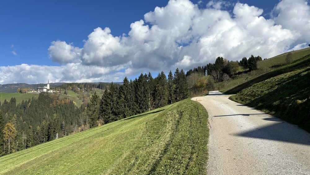 Ausgangspunkt der Tour war ein öffentlicher Parkplatz in Brückl. Nach einer kurzen Anfahrt über den Görtschitztal-Radweg (ca. 5 Km) ging es dann kurz vor Eberstein bergauf Richtung Mirnig. Nach ca. 3 Km. geht die Asphaltstraße in einen Schotterweg über und wir erreichen die Kirche von Mirnig. Ab hier dann weiter auf Forstwegen und Singletrails Richtung Sauofen und dann weiter zur Wolfsbrake, ein Orientierungspunkt mitten im Wald. Ab jetzt leicht abwärts Richtung Diex und dann über die neu sanierte Asphaltstraße über Gretschitz zurück zum Ausgangspunkt.